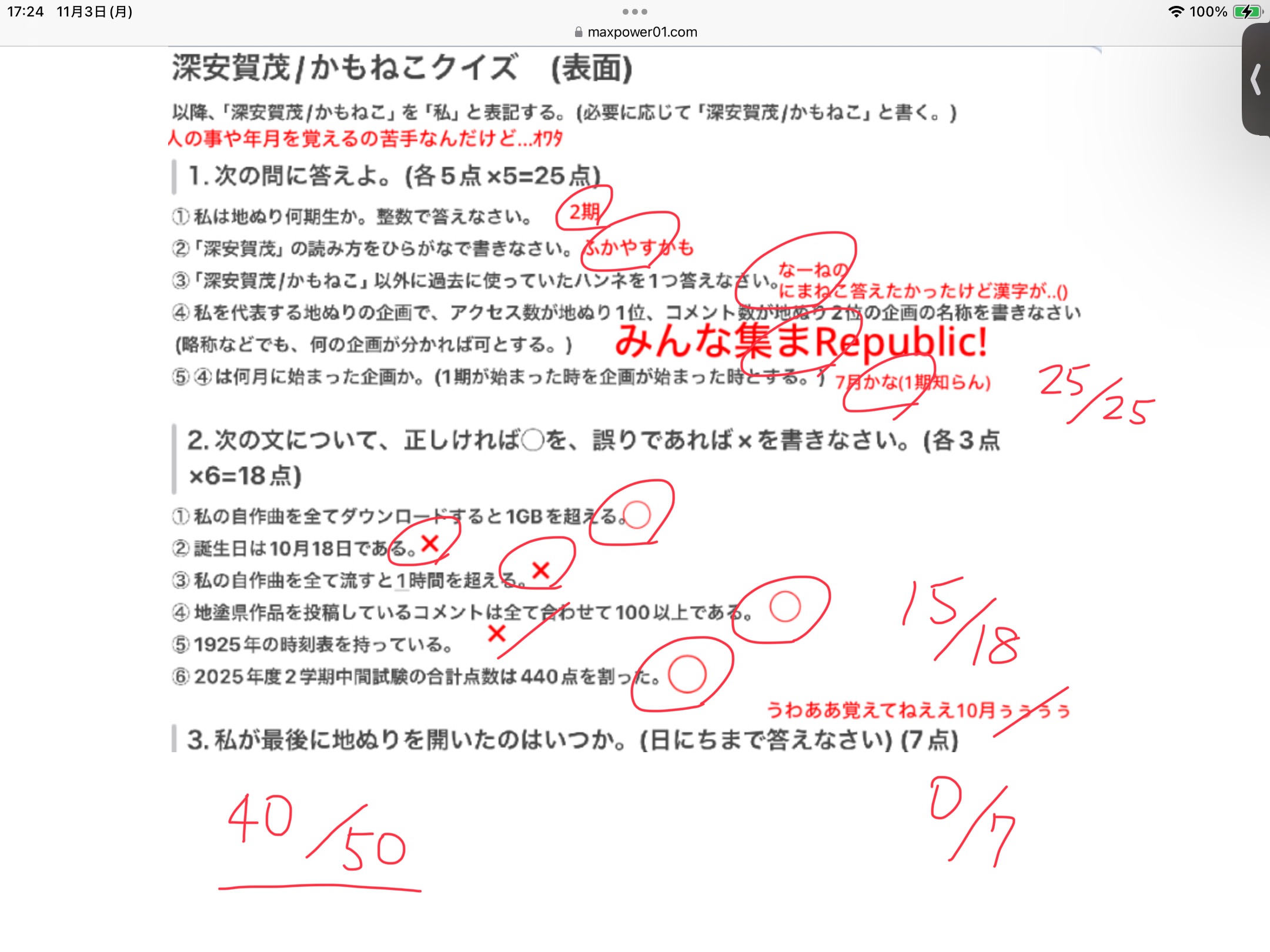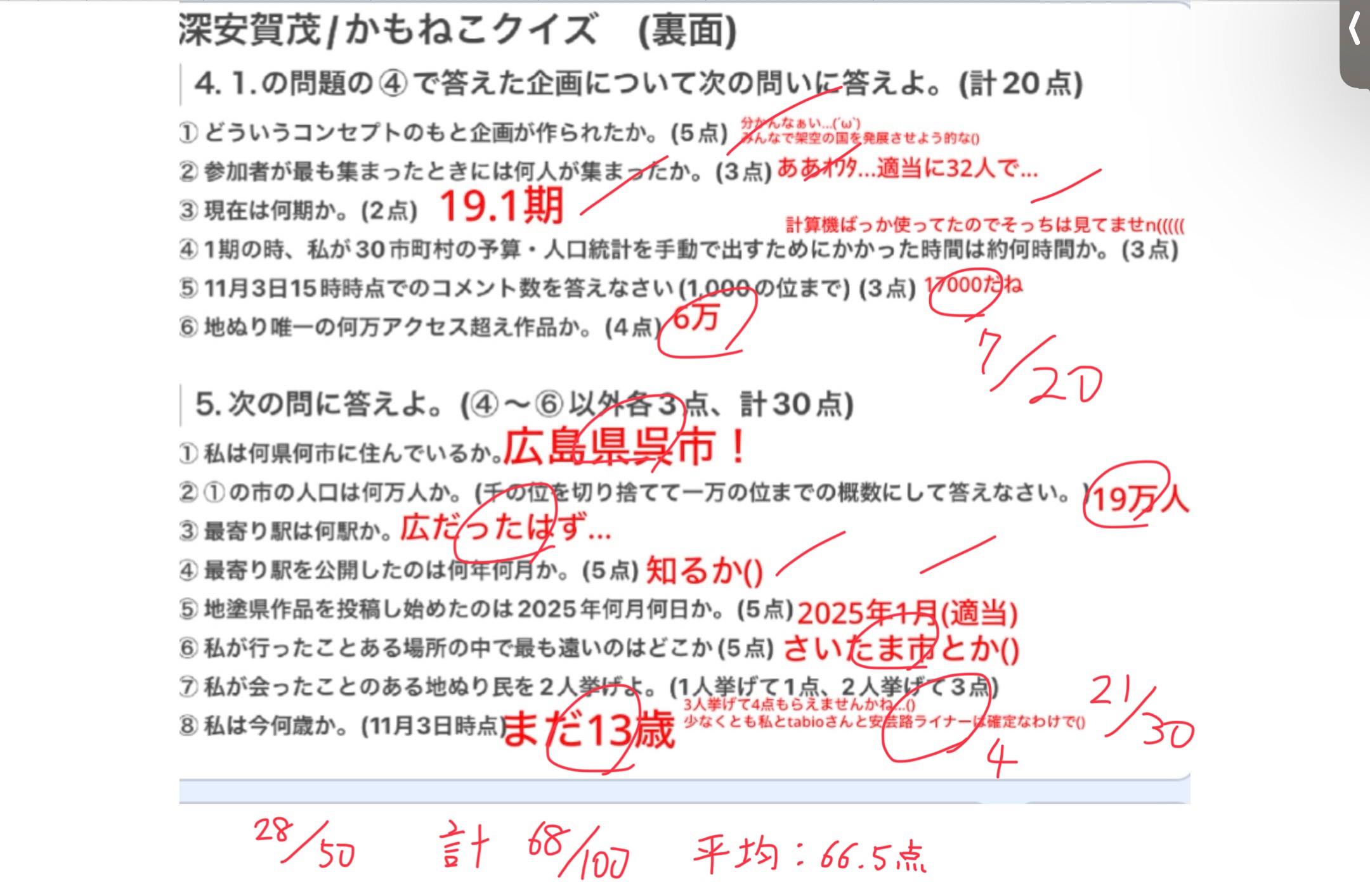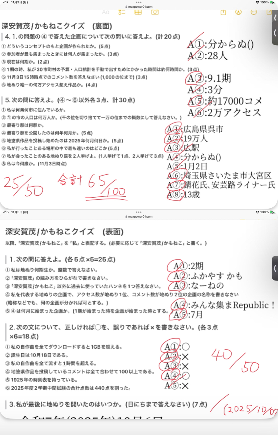 >>1940-1941 採点しました()
