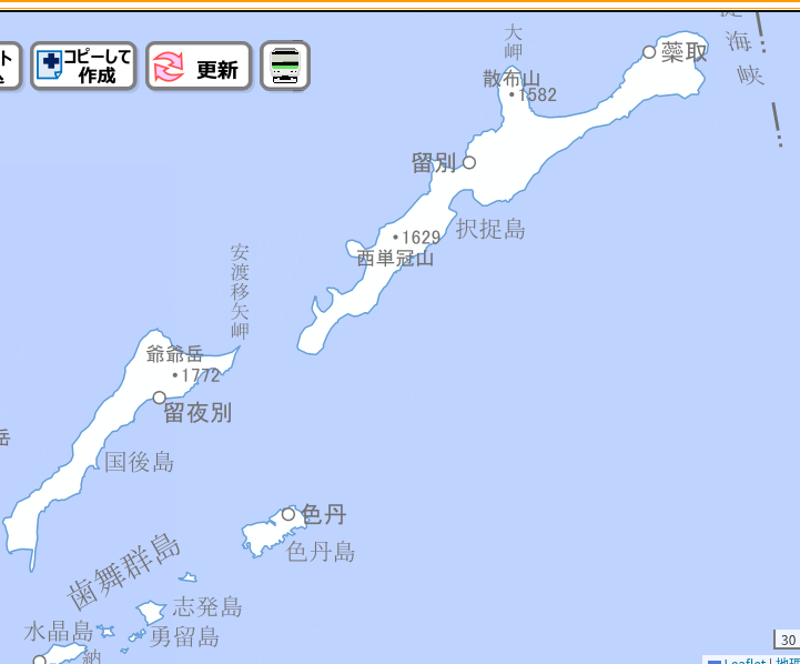 泊、留夜別、留別、紗那、蘂取、色丹ね() 全部村。