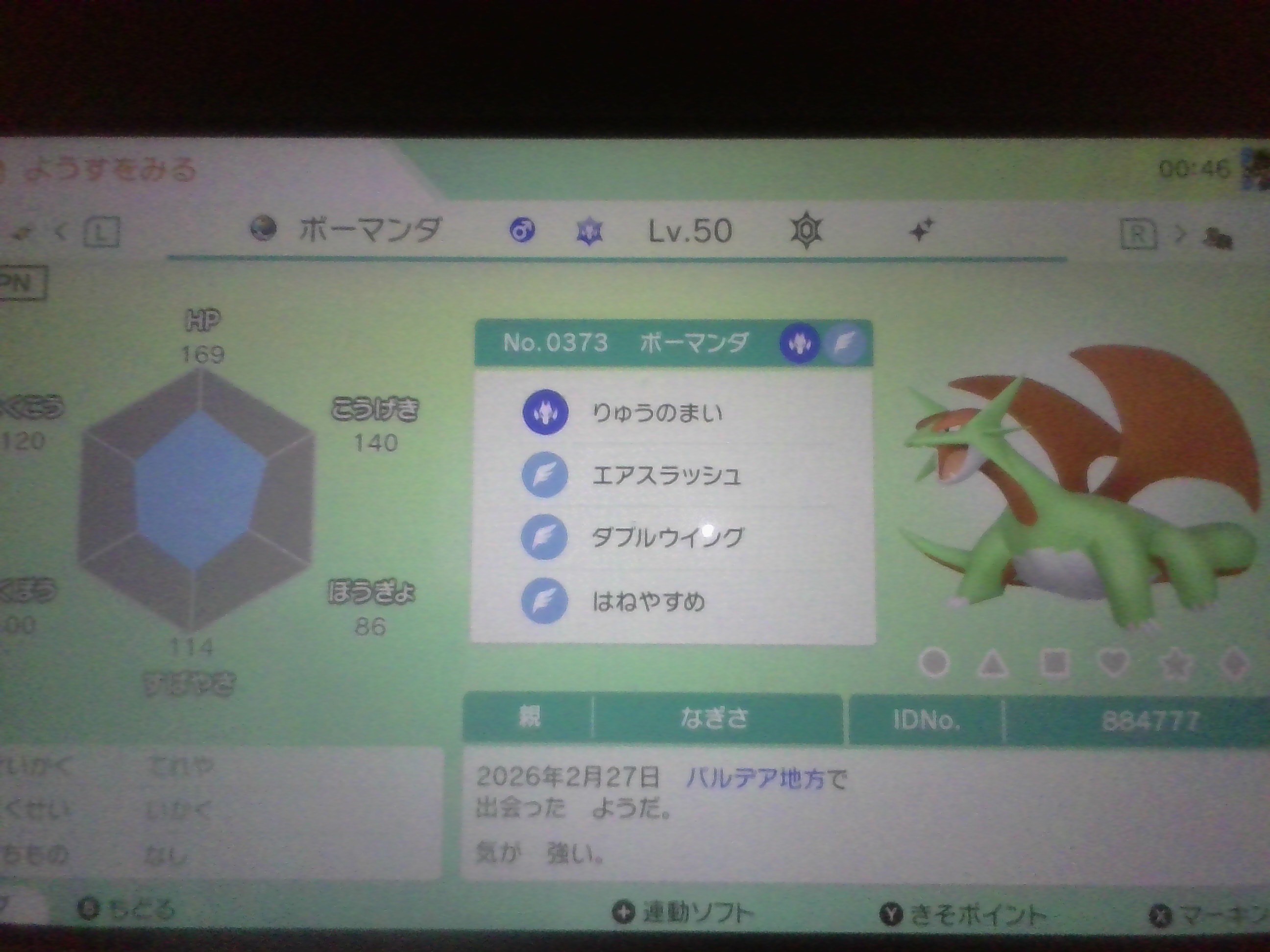 ポケモンチャンピオンズ用に捕まえたポケモン1匹目